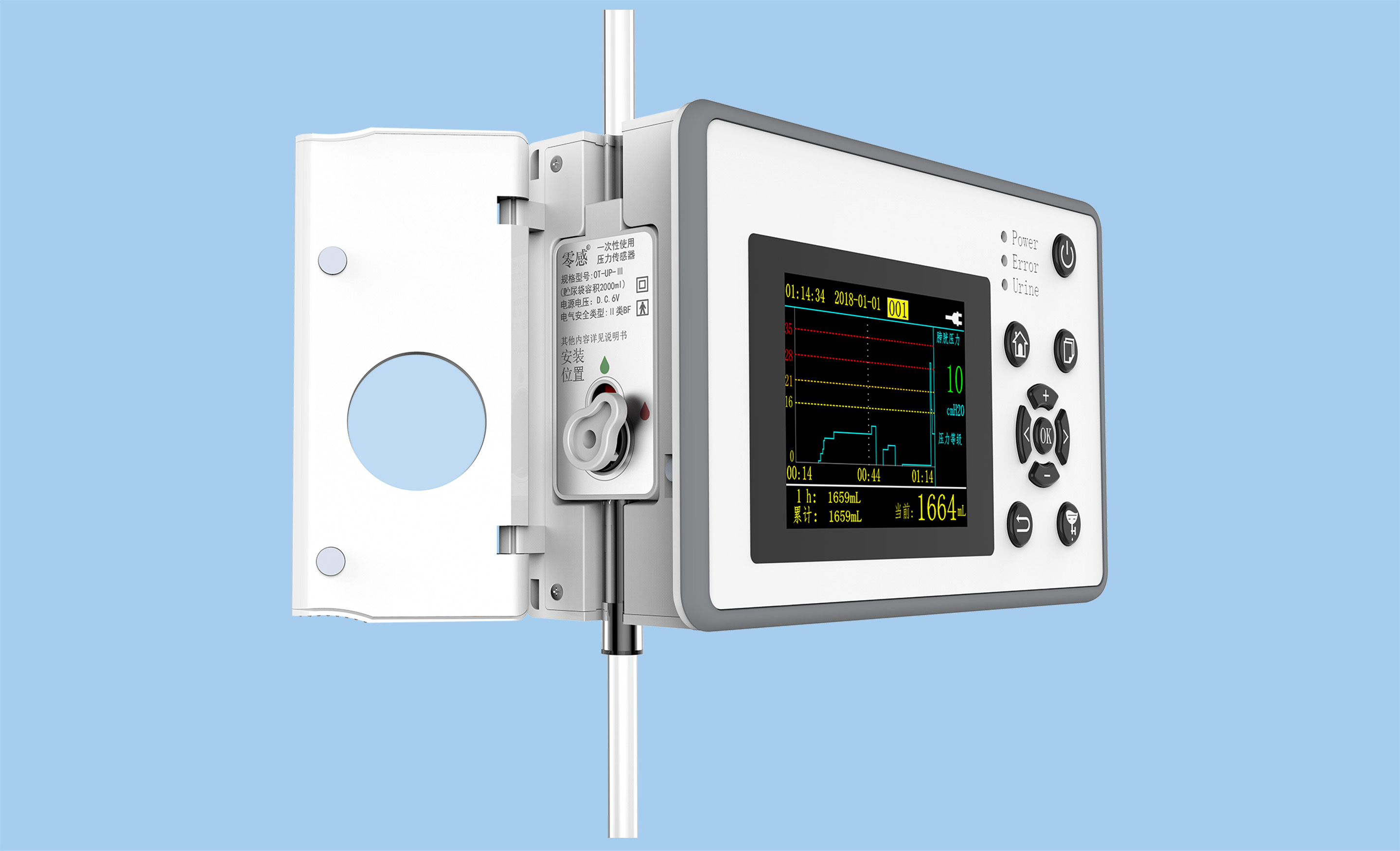產品介紹:尿動力監控儀主要用于留置導尿患者的尿動力監測和尿液引流控制,監測儲尿期膀胱內壓力、直腸壓力、尿流率(反映排尿期膀胱內壓力)、尿量,通過測量膀胱內的靜水壓力,從而監測腹腔內壓力,并根據監測參數控制排尿,實現抗返流抗溢尿的個性化仿生學尿液引流,輔助醫生進行臨床診斷。對于非泌尿系統疾病的留置導尿患者,可及時發現是否存在泌尿系統異常,以便盡早采取治療措施。